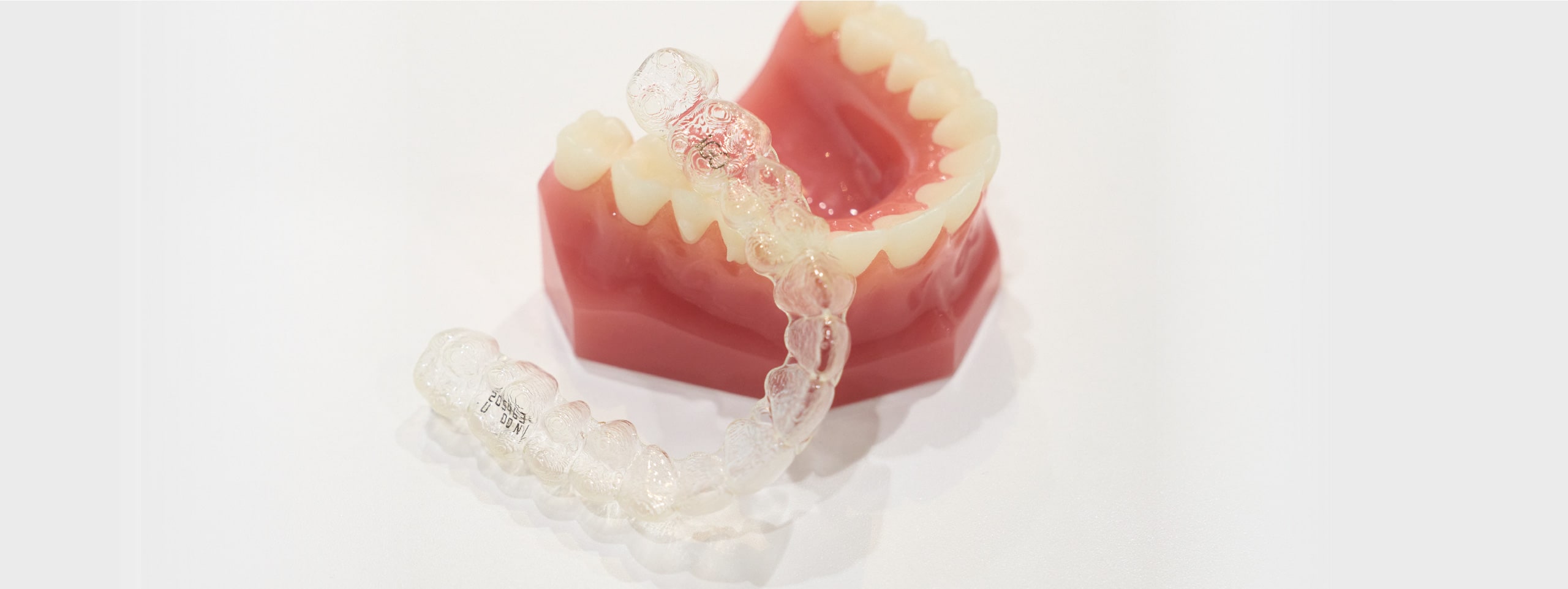 インビザライン社は、1999年アメリカのアライン・テクノロジー社が開発した、マウスピース型矯正装置を使用した矯正治療のパイオニア企業です。熱可塑性ポリウレタンと医療用のコポリエステルを混合したスマートトラック素材を用い、マウスピースのしなやかさ(フィット性)・耐久性を高めている点がインビザラインの特徴です。