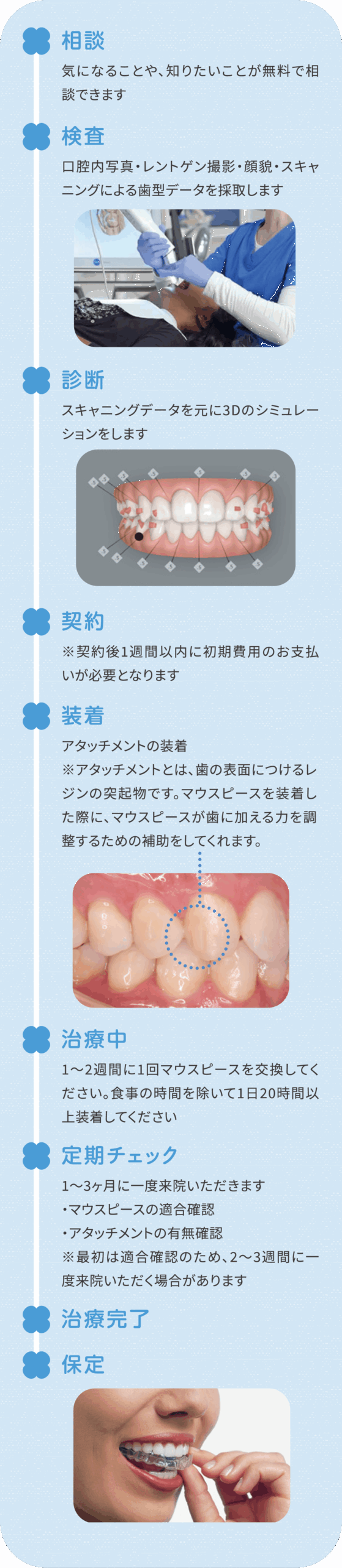 1〜2週間で一度マウスピースを交換していくため、常に衛生的。