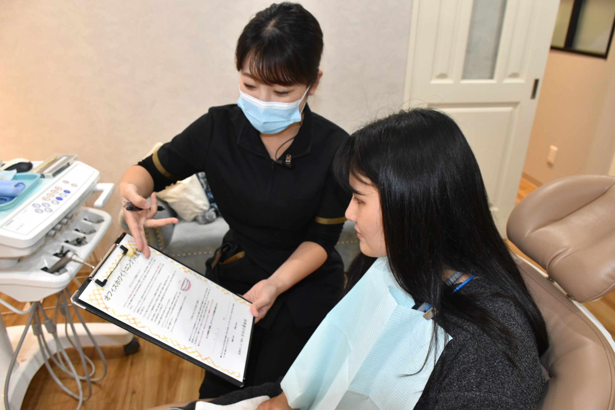 スタッフから、しっかりと説明をさせていただき、ご承諾のサインを頂いてから、ホワイトニングの施術に進みます。