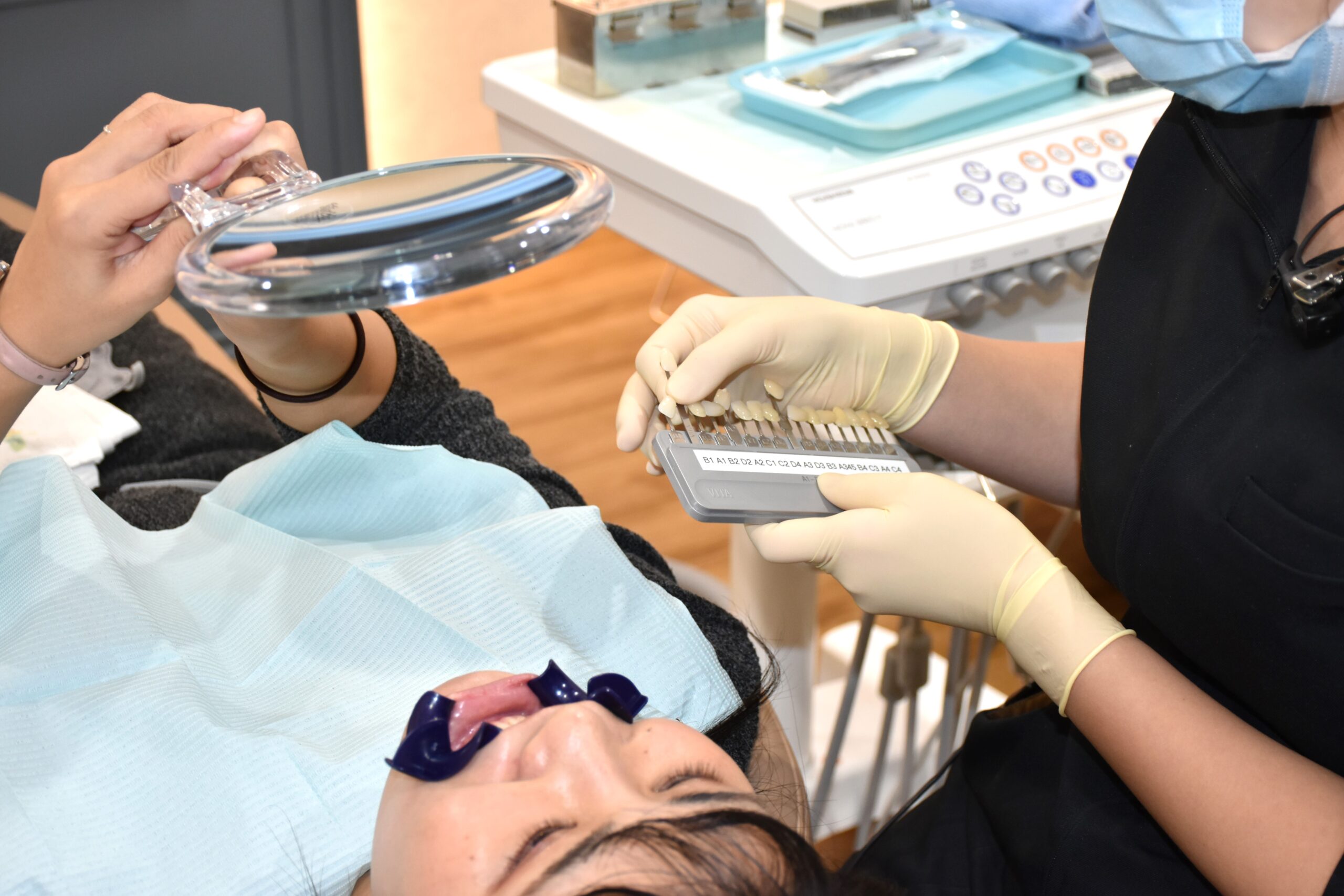 ホワイトニングをする前の歯の色味の確認をします。私の場合は「A3」という色味レベルでした😊