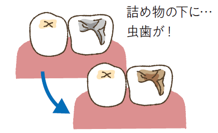 前述の[そもそも虫歯ってどうしてなるの?]の通り、虫歯菌は歯垢にすみつくので、“また同じところが虫歯になってしまう可能性が高まります(2次虫歯)”🦷⛏️💦