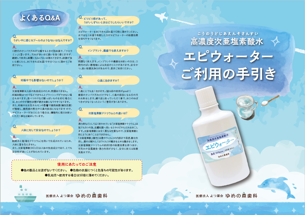 このエピウォーターは、【ゆめの森歯科の各医院受付で販売中】です♪
