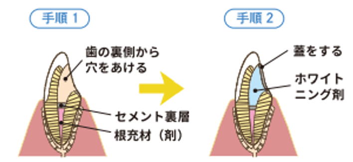 通常のホワイトニングは『歯の表面』を白くするのですが、神経のない歯の場合は『歯の内側から』白くしていく必要があるので、通常のホワイトニングでは効果を得られません🦷💦💦