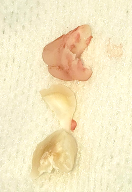 歯のほとんどはお肉の中にかくれていましたので、一度切開をして歯を取り出しやすいようにする必要がありました。