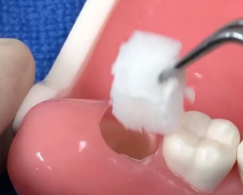 空いた穴にスポンゼルを入れることで、血を吸ってゼリー状になり、血餅を早期に良好な状態で作ってくれる効果が期待できます。