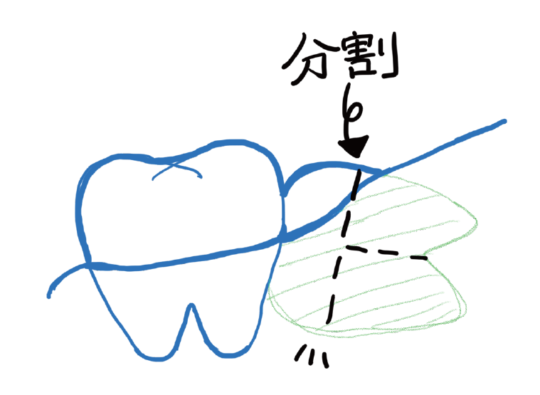 その為、歯を3分割にして少しずつ摘出していく という手順を踏みました。